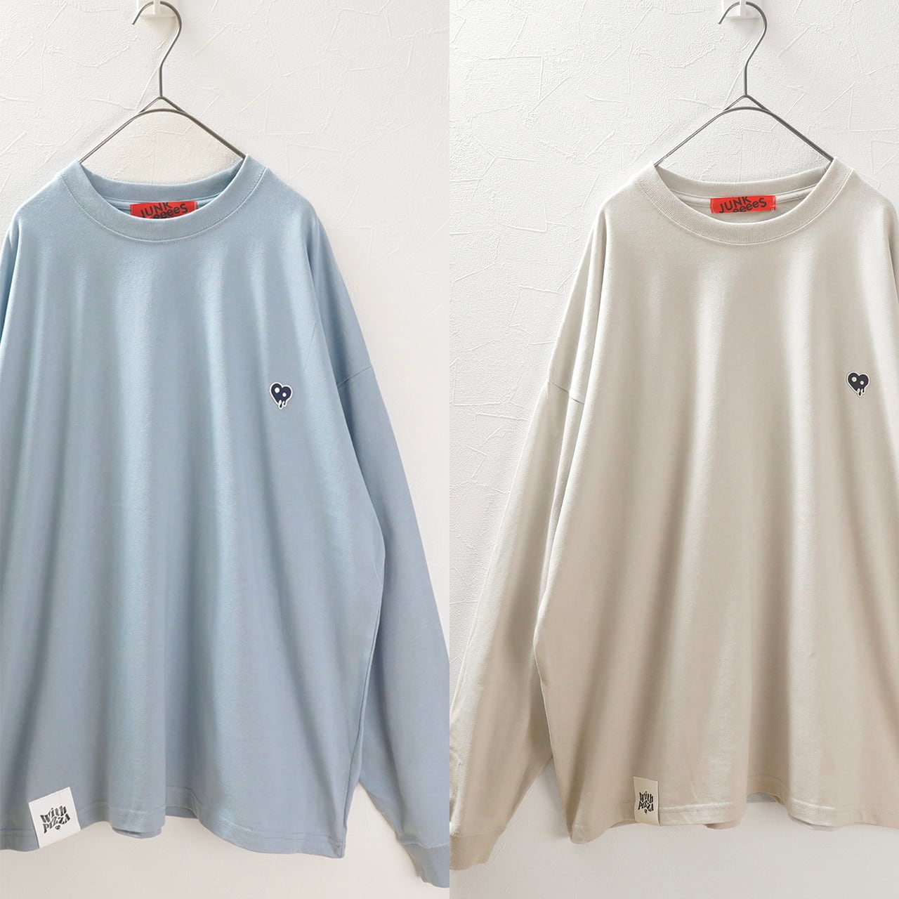 胸元にさりげない刺繍ワッペン、右裾にピスネームがついたシンプルなロンTee。